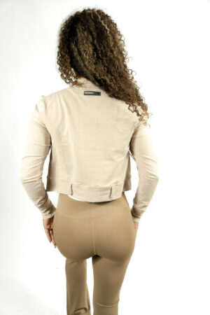 stretchy fabric and a slightly cropped